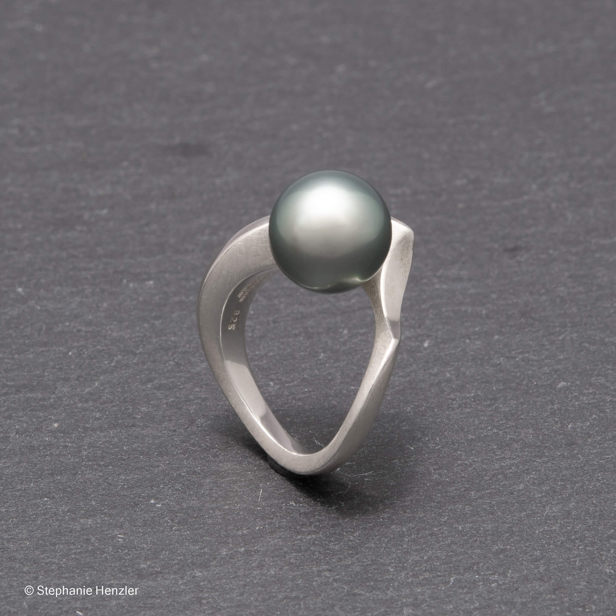 Die besondere Form für das elegante Extra! Gefertigt in massiv 925/- Silber und Tahiti-Zuchtperle mit makeloser Oberfläche in Naturfarben grün/grau.